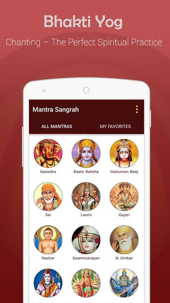 แอปพลิเคชันนี้ถูกออกแบบมาเพื่อตอบสนองความต้องการของผู้ใช้ที่ต้องการเข้าถึงมนตราและการสมาธิของพระเจ้าทั้งหมดในที่เดียว แอปพลิเคชันนี้มีไฟล์เนื้อเพลงที่เน้นแยกต่างหากสำหรับแต่ละมนตราพร้อมกับไฟล์เสียง คุณสามารถทำซ้ำมนตราได้เท่าที่คุณต้องการสำหรับการสมาธิของคุณ